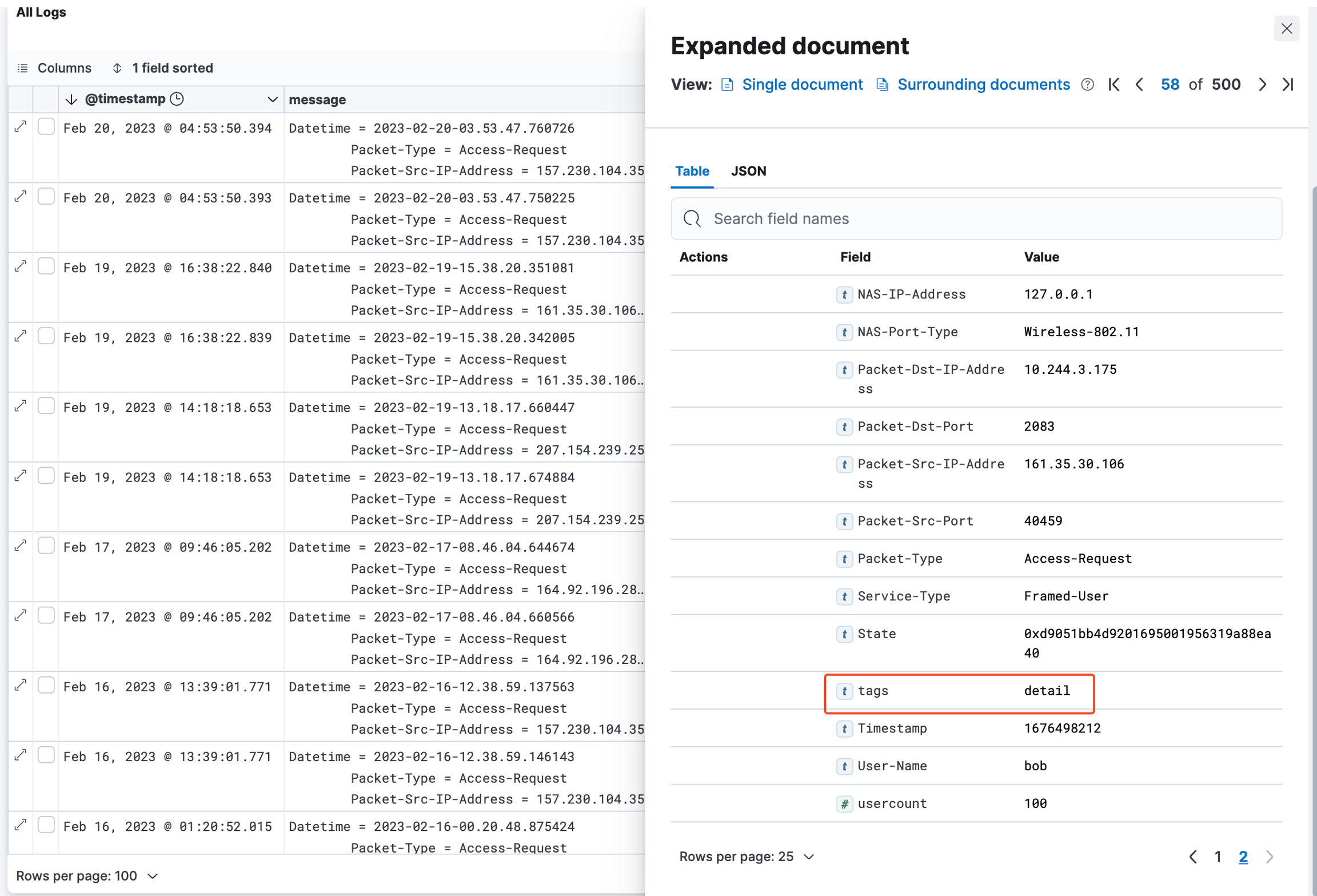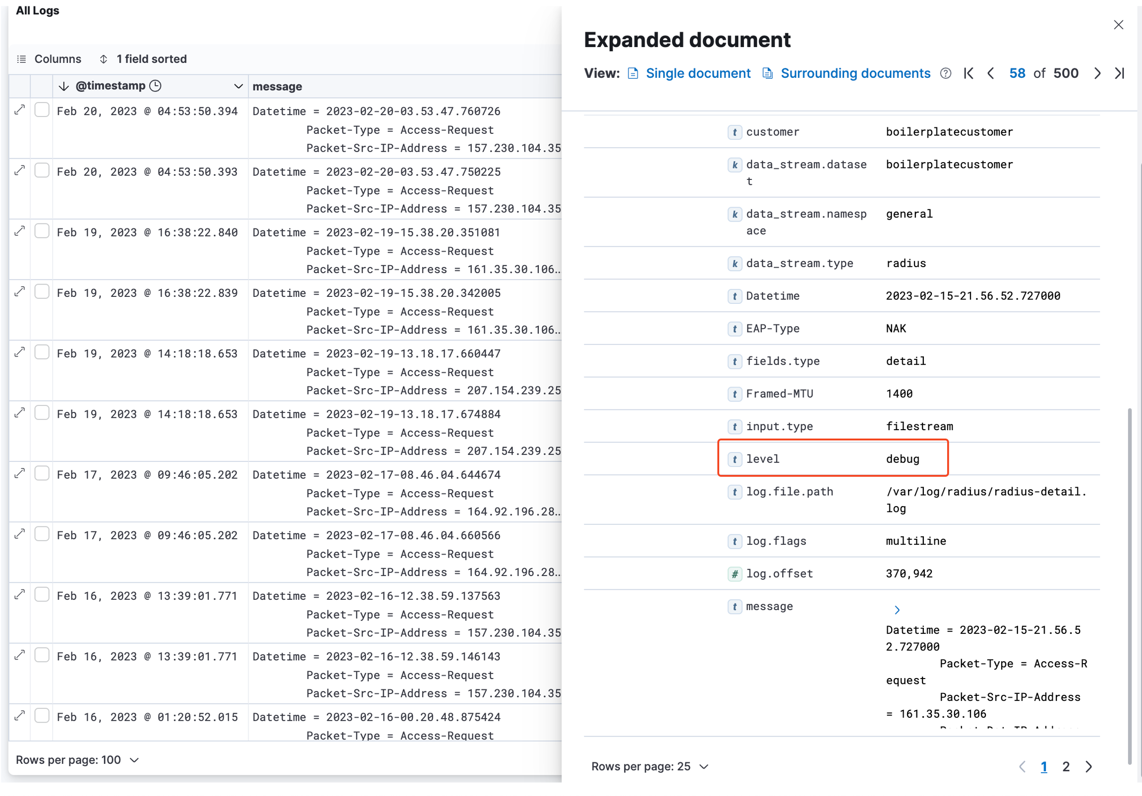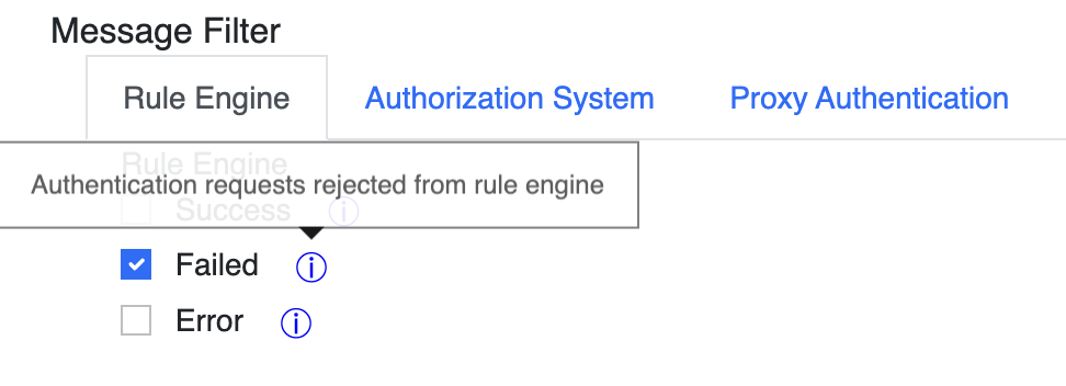 The filter can be configured to only consider logs from certain sources/sub-system from the RADIUSaaS platform: