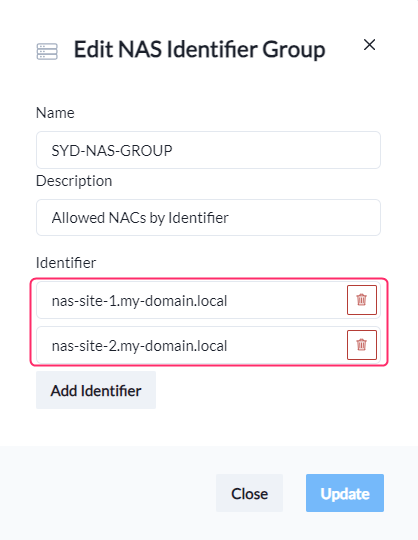 To set a NAS Identifier filter, either select **Identifiers** or **Groups**.&#x20;