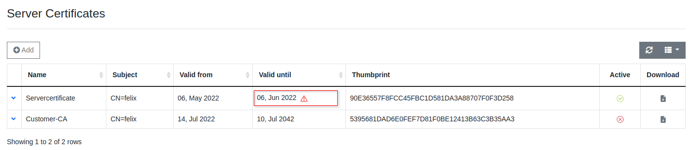 Ensure to monitor the expiry of your server certificate and renew it in due time to prevent service interruptions.