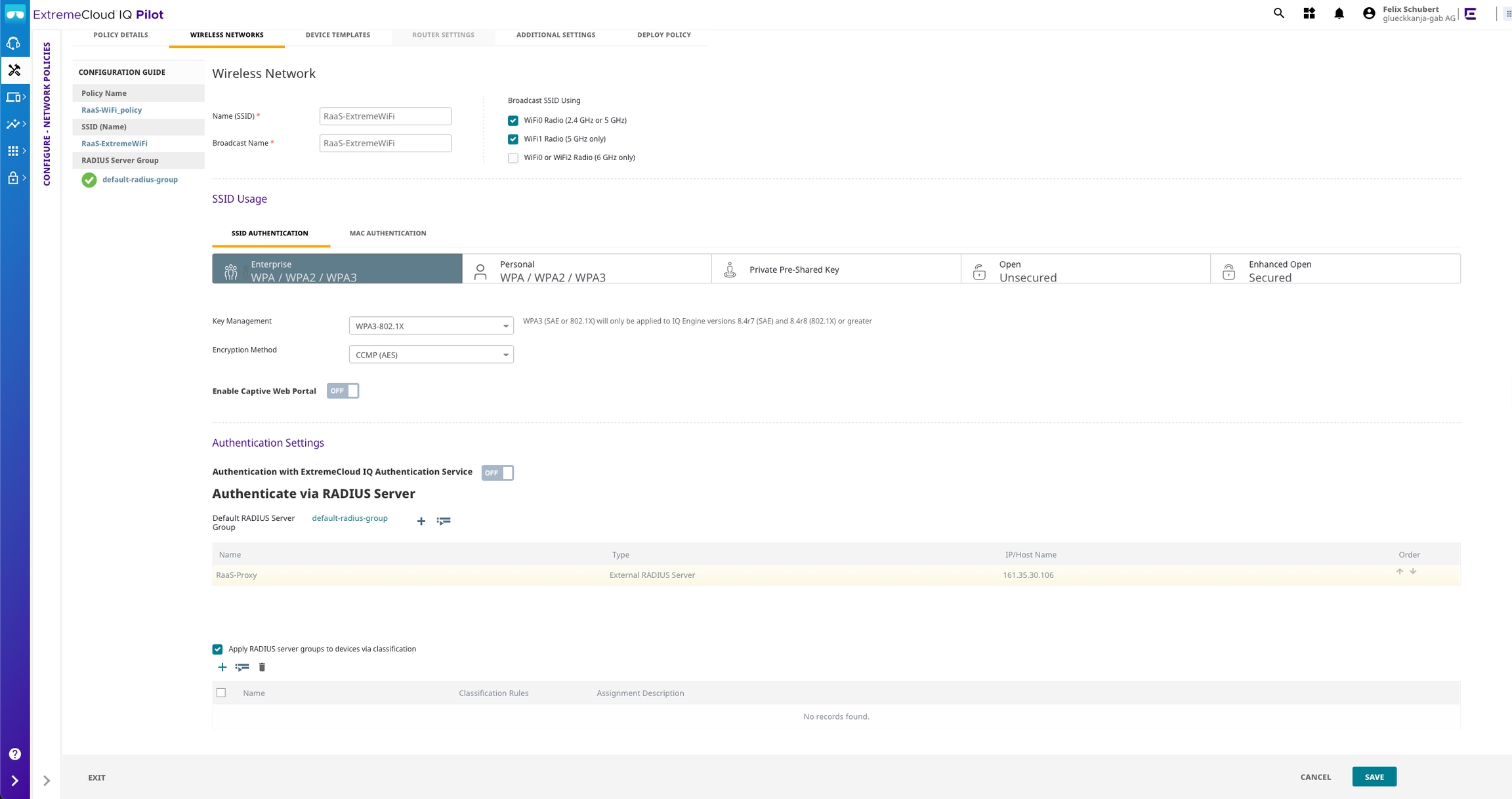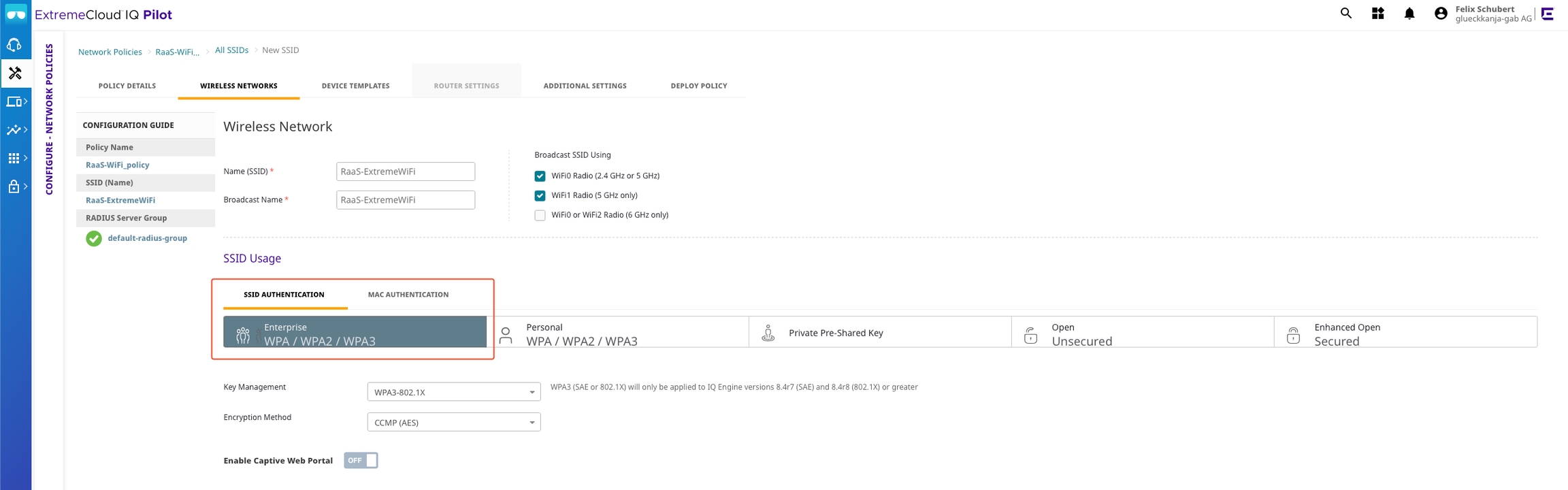 Choose your preferred SSID Name and select Enterprise for SSID Authentication