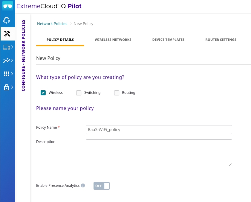 After the policy has been created, you're able to create a SSID. Click Add on Wireless Networks