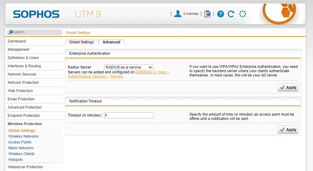Navigate to Wireless Protection, select Global Settings and go to the tab Advanced