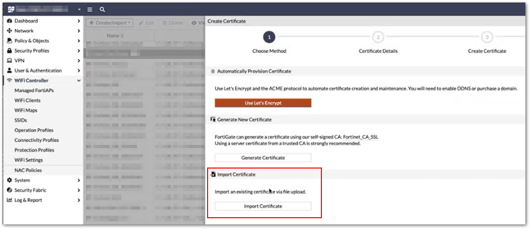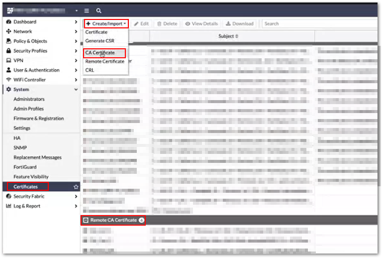 Import the RadSec Client Certificate to your FortiGate under System > Certificates > Import > Certificate.