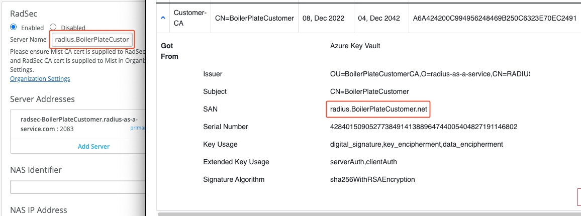 Under RadSec, select Enabled and set the Server Name to the SAN attribute of your RADIUS Server Certificate.