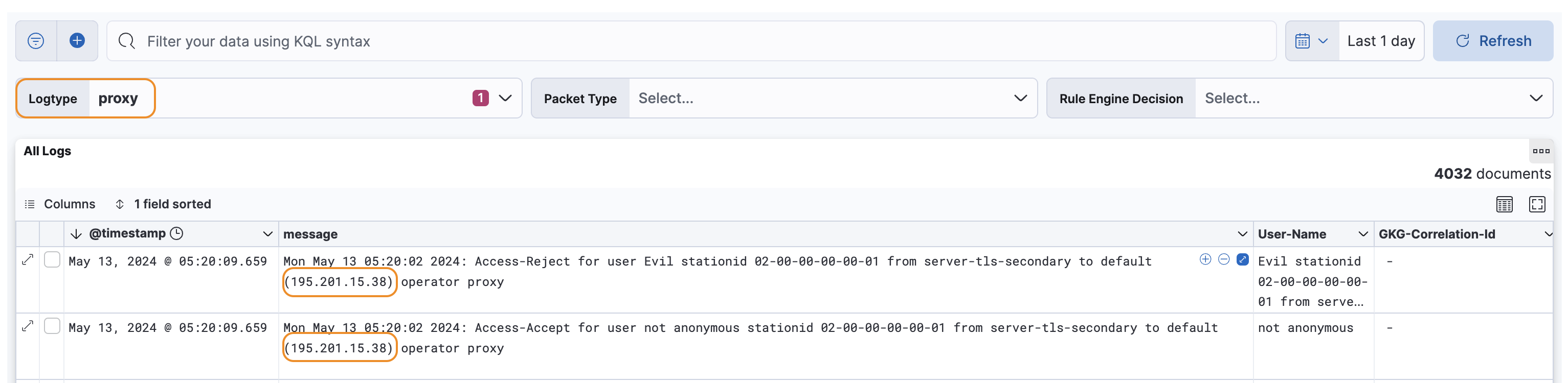 To identify the public IP of the authenticating site for a particular authentication, the approach depends on whether you are using a RADIUS connection (via the RADIUS proxies) or a direct RadSec connection:
