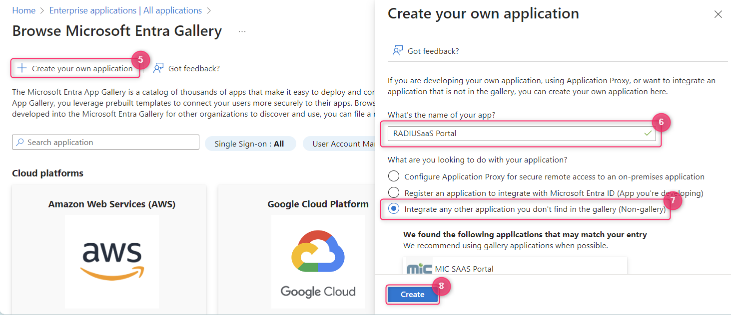 6. Give a name for the app (e.g. RADIUSaaS Portal)